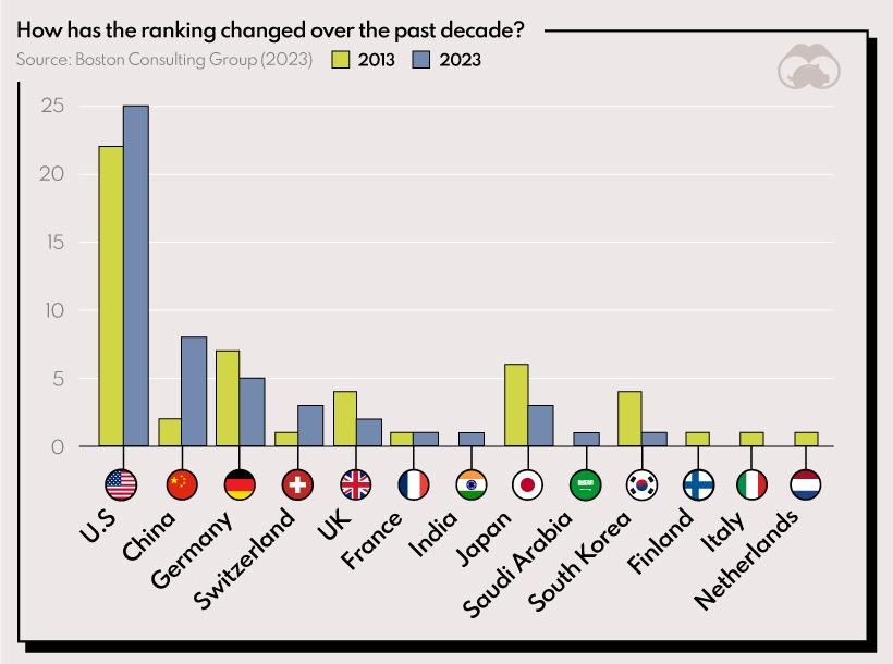 For all those who continue to prophesy that the US is on the precipice of falling off, this chart shows how ahead the US is in churning the globe's most innovative companies.