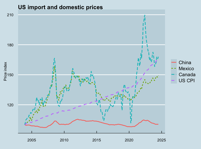 In stark contrast, imports from Canada experienced substantial inflation, with prices ending 68% higher than at the beginning of the periodāsurpassing even the US CPI, which rose by 65%.