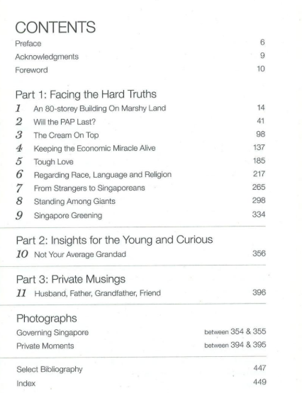 My first takeaway comes from the book's chapter list, which highlights what Lee considered Singapore's core issues.