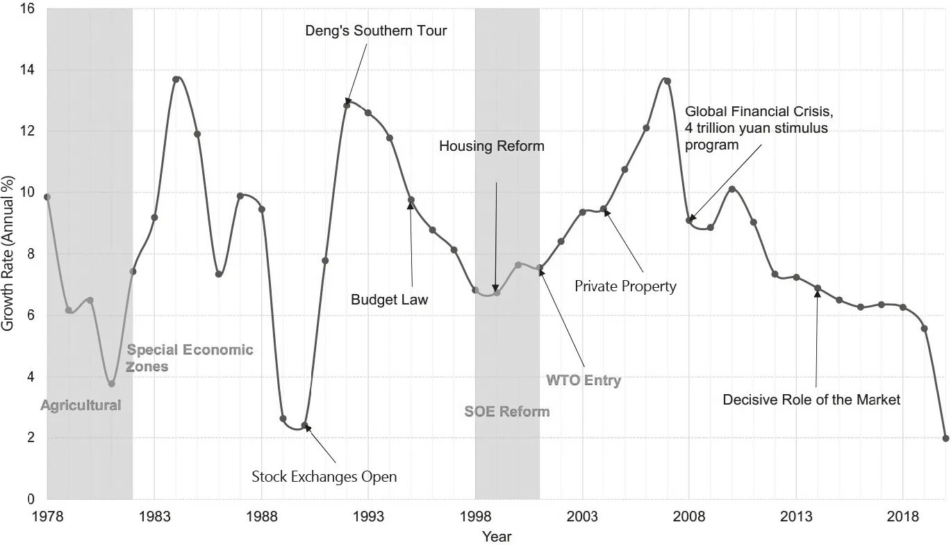 Reform is China’s second revolution,’’ Deng Xiaoping famously stated, and between 1978 and 2008 four major tides of reform triggered major surges of growth.