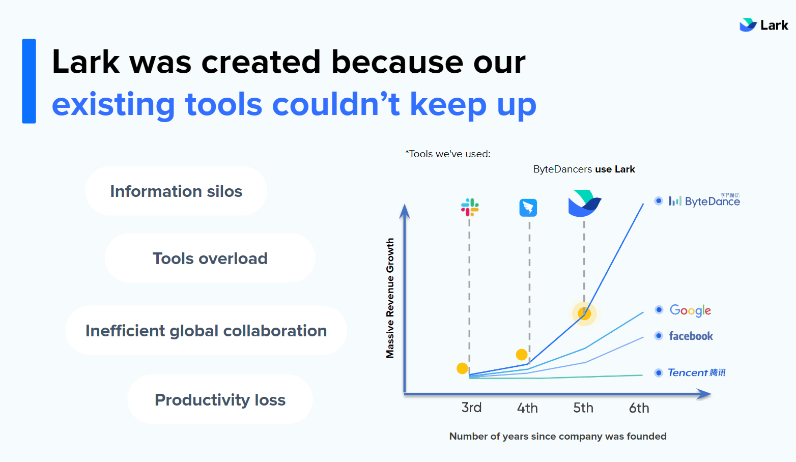 First, I admire the concept of addressing a clearly defined internal problem.Yiming and the team created Toutiao because they were dissatisfied with the current news platforms. Similarly, Bytedance created Lark because they felt existing tools did not meet their needs as they scaled globally.